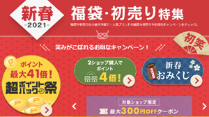 『楽天市場 福袋・初売りセール』お得なポイントアップキャンペーンまとめ!エントリー必須!2ショップ以上のお買い物(各千円以上)でポイント4倍